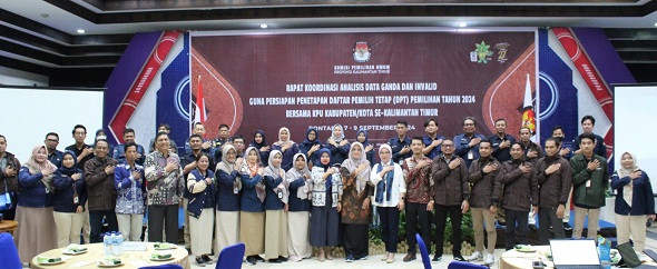 SAMARINDA – Komisi Pemilihan Umum (KPU) Provinsi Kalimantan Timur menggelar Rapat Koordinasi Analisis Data Ganda Dan Invalid Guna Persiapan Penetapan Daftar Pemilih Tetap (DPT) Tahun 2024 bersama KPU Kabupaten/Kota Se-Kalimantan Timur di Grand Equator Hotel, Kota Bontang dari tanggal 7 hingga 9 September 2024.