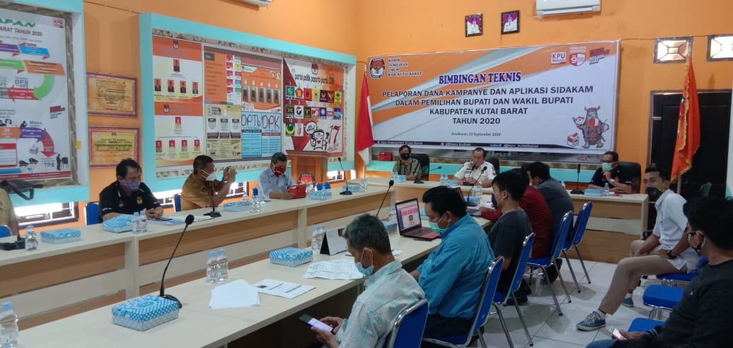 SENDAWAR – Komisi Pemilihan Umum (KPU) Kabupaten Kutai Barat (Kubar) gelar Bimbingan Tehnik (Bimtek) dana kampanye dan aplikasi Sistem Dana Kampanye (Sidakam) diikuti Liaison Officer (LO) kedua Paslon, FX. Yapan – Edyanto Arkan (Yakan) dan Marthinus Kenton – Abdul Aziz (MAS) di aula KPU Kubar, Selasa (22/9/2020).