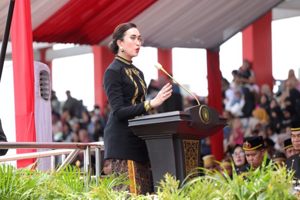 TENGGARONG – Menteri Pariwisata Republik Indonesia, Widiyanti Putri Wardhana membuka Festival Adat Erau 2025 di Stadion Rondong Demang Tenggarong, Minggu (21/9/2025)