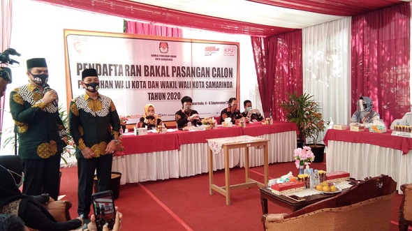Samarinda. Hari pertama di buka pendaftaran oleh KPU Samarinda, Bakal Pasangan Calon (Bapaslon) Andi Harun-Rusmadi resmi mendaftarkan diri ke KPU Samarinda, Jumat (04/09/2020) pukul 14.07 Wita. Pasangan ini didampingi keluarga dan koalisi partai pengusung yang terdiri dari ketua dan sekretaris turut hadir.