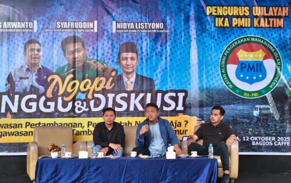 SAMARINDA – Dinas Energi dan Sumber Daya Mineral (ESDM) Provinsi Kalimantan Timur menegaskan komitmennya memperbaiki sistem pengawasan sektor pertambangan di daerah. Hal itu disampaikan dalam kegiatan Ngopi Minggu dan Diskusi bertajuk “Pengawasan Pertambangan, Pemerintah Ngapain Aja? Potret Pengawasan Aktivitas Tambang di Kalimantan Timur” yang digelar Ikatan Keluarga Alumni Pergerakan Mahasiswa Islam Indonesia (IKA PMII) Kaltim di Bagios Caffe, Jalan KH Abdurrasyid, Samarinda. Minggu (12/10/2025).