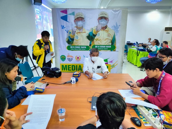 Rusdiansyah Aras – Saat Menyampaikan Hasil Akhir Perolehan Medali Kaltim Kepada Awak Media