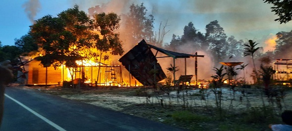 SENDAWAR – Tiga rumah tinggal dan tiga sarang walaet musnah dilalap api pada peristiwa kebakaran di Kampung Mendika RT. 01, Kecamatan Damai, Kutai Barat (Kubar), Sabtu (9/10/2021).