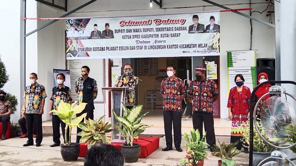 SENDAWAR – Sebagai ucapan puji syukur kepada Tuhan yang Maha Esa, pejabat eselon dan staf kantor Camat Melak, Kabupaten Kutai Barat (Kubar) mengadakan syukuran dengan mengundang Bupati Kubar dan Wakil Bupati serta masyarakat se-Kecamatan Melak di halaman Kantor Camat Melak, Kamis (18/11/2021).