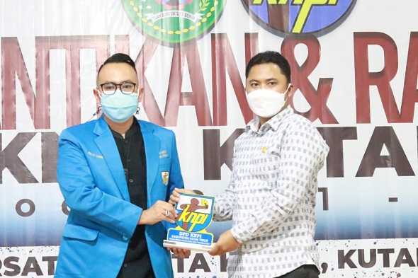 Ramadhani menerima plakat dari Ketua KNPI Kutim Felly Lung