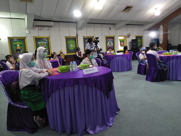 Plh Kepsta RRI Samarinda. Supriati yang juga project leader kegiatan pelatihan presenter cilik saat membuka acara
