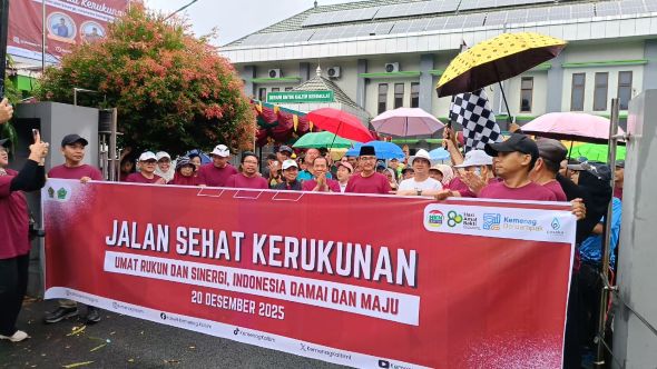 SAMARINDA — Hujan gerimis mewarnai Jalan Sehat Kerukunan Umat Beragama Provinsi Kalimantan Timur, yang digelar pada Sabtu pagi, (20/12/2025). Meski hujan turun sejak subuh, tidak menyurutkan antusiasme masyarakat untuk mengikuti kegiatan yang bagian dari rangkaian peringatan Hari Amal Bakti (HAB) ke-80 Kementerian Agama Republik Indonesia. Kegiatan tahunan ini diisi dengan beragam aktivitas, mulai dari kegiatan keagamaan hingga olahraga bersama sebagai simbol kebersamaan.