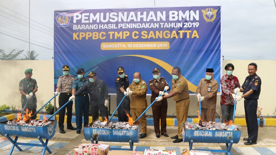 Kepala KPPBC Sangatta Hari Murdianto, mengungkapkan, BMN yang dimusnahkan berupa Hasil Tembakau (rokok) illegal. Sebanyak 89.580 batang hasil tembakau dan 42 botol minuman mengandung Etil Alkohol dengan nilai barang sebesar Rp 41.736.000 yang didapatkan dari kegiatan penyisiran di 11 Kecamatan di Kutim. Yakni Sangkulirang, Kaubun, Kaliorang, Busang, Rantau Pulung, Muara Wahau, Bengalon, Kongbeng, Sangatta Selatan, Batu Ampar dan Muara Bengkal.