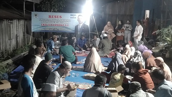 SAMARINDA -Anggota DPRD Samarinda periode 2019-2024 Eko Elyasmoko menggelar reses masa sidang III 2020. Usai sholat isya politisi partai Demokrat ini menggelar RT 44, Kelurahan Loa Bahu, Sungai Kunjang.