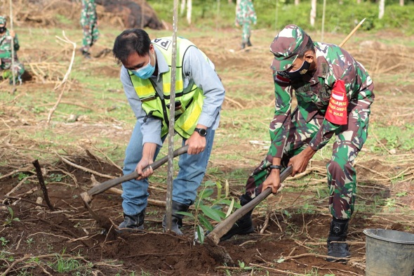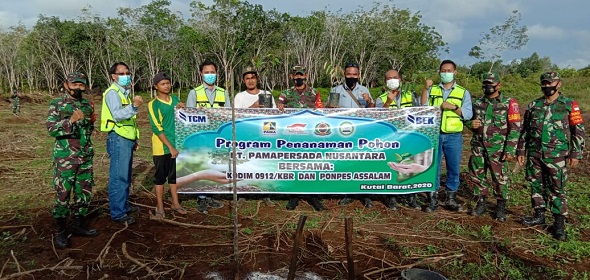 SENDAWAR –Pamapersada Nusantara Kutai Barat (Kubar) TCM dan BEK bekerjasama dengan Kodim 0912/Kbr serta Pondok Pesantren (Ponpes) Assalam menanam 500 pohon buah dengan berbagai jenis.