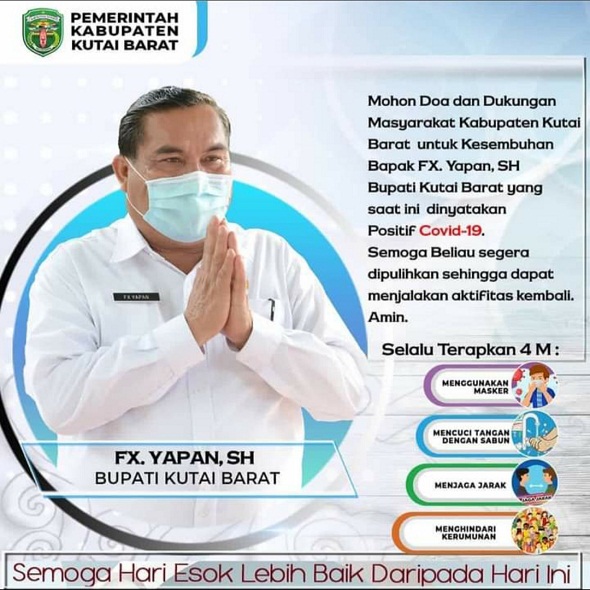SENDAWAR-Bupati Kutai Barat (Kubar) FX Yapan, telah terkonfirmasi positif terinfeksi covid-19. Hasil tersebut diperoleh dari Tes Cepat Molekular (TCM) RSUD HIS 26 Desember lalu.