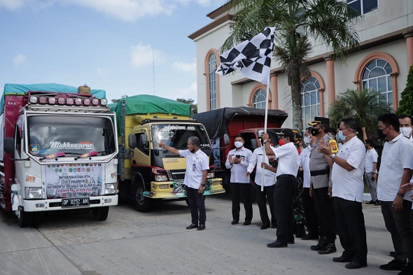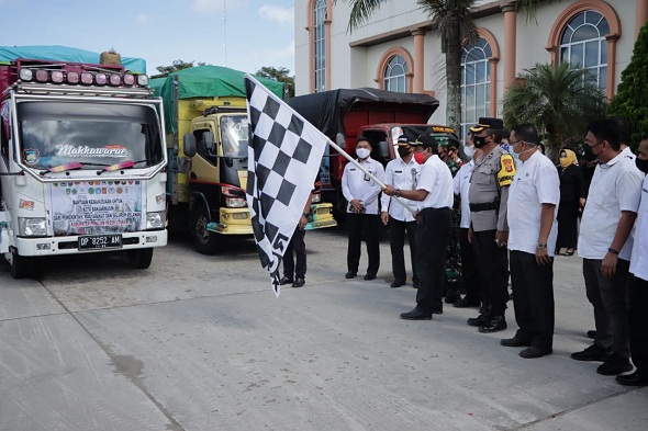 Diahir sambutannya Hamdam juga berpesan kepada seluruh rombongan pengangkut bantuan maupun pendamping untuk selalu berhati-hati di jalan sehingga bantuan yang akan diberikan kepada korban bencana segera sampai dan tepat tujuan kepada yang dituju.
