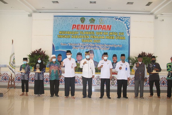 PENAJAM,- Musabaqah Tilawatil Qur’an (MTQ) ke-XIV Tahun 2021 tingkat Kabupaten Penajam Paser Utara (PPU) resmi ditutup oleh Plt. Sekretaris Daerah Kabupaten PPU, DR. Muliadi, Rabu, (24/2) di Masid Agung Al-Ikhlas, Nipah-nipah. Dalam ajang tahunan ini, Kecamatan penajam berhasil menjadi juara umum dengan perolehan juara terbanyak.