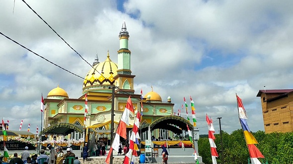MUARA MUNTAI – Warga Desa Pulau Harapan, Kecamatan Muara Muntai, Kabupaten Kutai Kartanegara, Kalimantan Timur, Jumat (12/3/2021) tadi patut berbahagia. Warga desa yang mayoritas muslim ini memiliki masjid baru yang jauh lebih besar dan lebih megah.