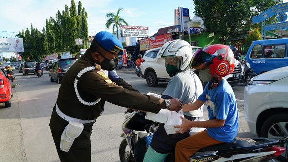 Dalam kegiatan tersebut, selain membagikan takjil, personel dari korps baret biru ini juga membagikan masker kepada pengguna jalan yang tidak menggunakan masker. (*/man)