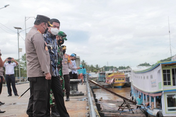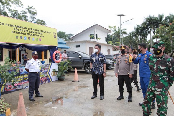 SAMARINDA – Wali Kota Samarinda Andi Harun melakukan peninjauan langsung pos pengamanan penyekatan kegiatan mudik Hari Raya Idul Fitri 1442 H/2021 M yang berada di batas-batas Kota Samarinda, Sabtu (8/5/2021) siang. Dalam peninjauan tersebut, Wali Kota didampingi Komandan Kodim 0901/SMD Kolonel Inf Oni Kristiyono Goendong, Kapolresta Samarinda Kombes Pol Arif Budiman, dan Waka Polresta Samarinda AKBP Dedi Agustono.