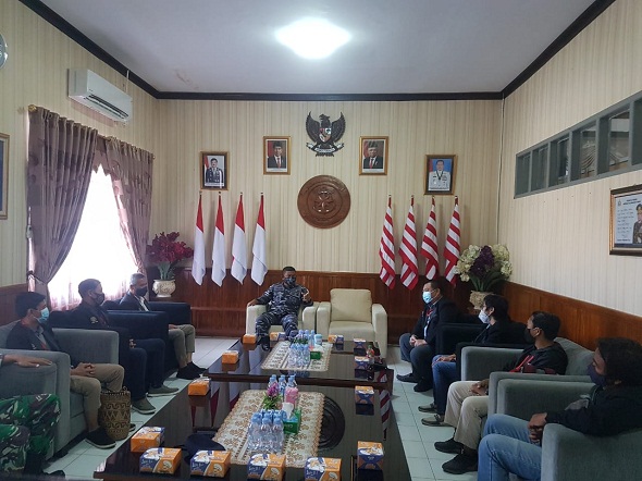 SANGATTA- Silaturahim antara pengurus Perwatuan Wartawan Indonesia (PWI) Kabupaten Kutai Timur (Kutim) bersama Danlanal Sangatta Letkol Laut (P) I Komang Nurhadi beserta jajarannya berlangsung sangat akrab, Senin (21/6/2021). Bahkan kehangatan silaturahim dengan banyak obrolan santai kali ini berlangsung sejak awal pertemuan audiensi jajaran PWI Kutim di Makolanal Sangatta, Bukit Pelangi.