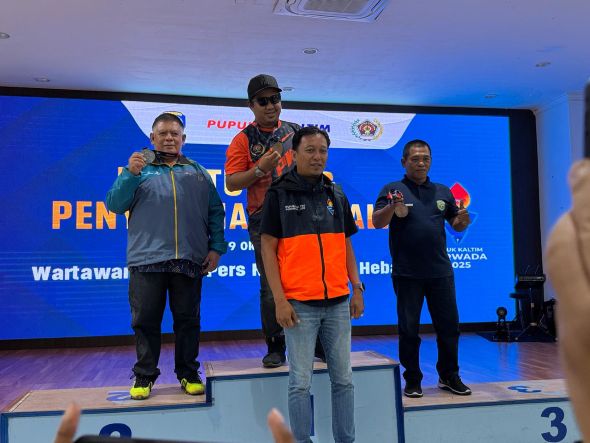 SENDAWAR – Ketua Persatuan Wartawan Indonesia (PWI) Kabupaten Kutai Barat (Kubar) Alfian Nur, merasa bangga berkesempatan menyerahkan puluhan medali emas, perak dan perunggu, hasil pemenang Pekan Olahraga Wartawan Daerah (Porwada) PWI Kaltim ke III dihelat PWI Bontang, yang di sponsori PT Pupuk Kaltim tahun 2025.
