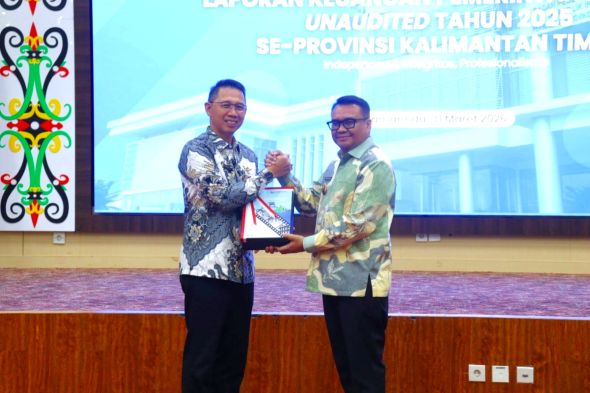 Penyerahan LKPD dilakukan secara serentak bersama 10 kepala daerah kabupaten/kota se-Kalimantan Timur, bertempat di Auditorium Nusantara Kantor Perwakilan BPK RI Kaltim, Selasa (31/3/2026).