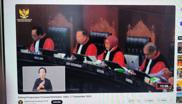 Sidang dimulai pukul 13.30 WIB dan dipimpin Ketua MK Suhartoyo. Pada pukul 13.56 WIB, Hakim Konstitusi Enny Nurbaningsih mulai membacakan amar putusan.