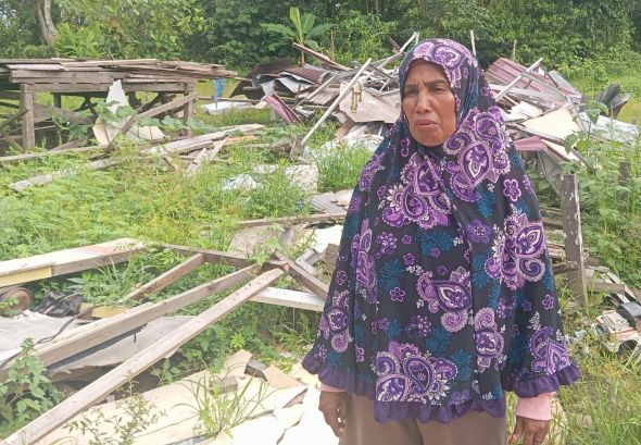 “Kami tinggal dari puing-puing rumah yang dibongkar, semua hancur. Tanaman kami pun habis dilindas,” ujarnya.