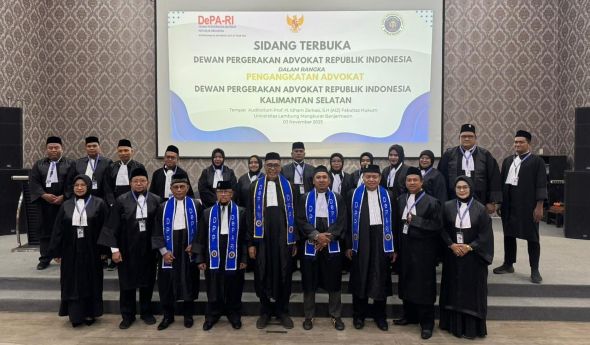 Dukungan itu disampaikan Luthfi Yazid saat melantik advokat baru DePA-RI se-Kalimantan Selatan di Auditorium Prof. H. Idham Zarkasyi, SH, Fakultas Hukum Universitas Lambung Mangkurat (ULM), Banjarmasin, Senin (3/11/2025). Acara tersebut dihadiri Dekan Fakultas Hukum ULM, Kaprodi Pascasarjana ULM, para wakil dekan, serta sejumlah praktisi hukum di Kalimantan Selatan.