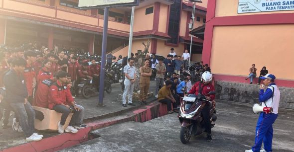 SAMARINDA – Upaya menekan angka kecelakaan lalu lintas tidak cukup hanya dengan penegakan hukum generasi muda. Hal ini menjadi latar belakang PT Jasa Raharja Cabang Samarinda bersama Honda dan Satlantas Polresta Samarinda melaksanakan Safety Riding Di Kampus IKIP PGRI Kaltim, Kamis (23/10/2025).