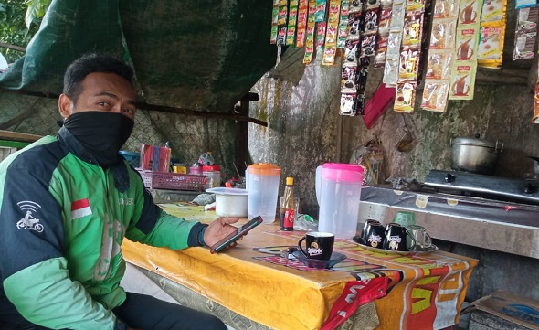 Usai menyantap mie goreng, Anto sapaan akrabnya menyalakan rokoknya sambil berbincang dengan media ini. Ia bercerita tentang suka dan duka menjadi ojek online selama pandemi.