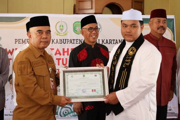 TENGGARONG – Asisten I Pemerintah Kabupaten Kutai Kartanegara (Kukar) Akhmad Taufik Hidayat menghadiri wisuda program “Satu Desa Satu Tahfidz Quran” angkatan VI tahun 2025 bertempat di Masjid Al Anshar Jalan Arwana blok A, RT. 22, Timbau, Kecamatan Tenggarong, Senin (22/12/2025).