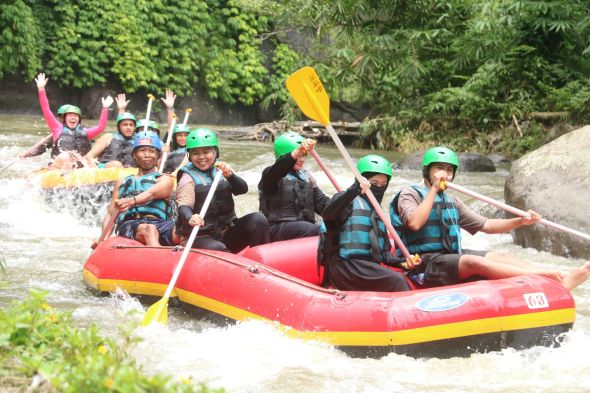 Petualangan kembali berlanjut. Sepanjang lintasan 10 kilometer, seluruh peserta menikmati aktivitas dengan antusias, saling membantu dan tertawa bersama ketika melewati jeram.